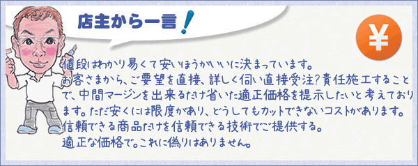 施工場所や枚数、面積、駐車場の有無など条件によって値引き致しますので、正式な金額は弊社までお問い合わせ下さい。
